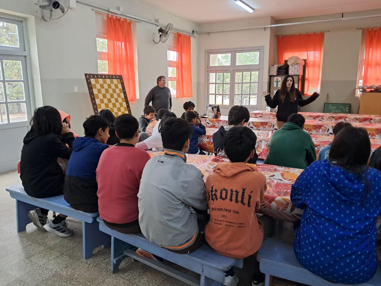 Mariano Menéndez de la Asociación Catamarca Ajedrez y la Coordinadora Provincial de Ajedrez Escolar, Prof. Sol Jalil, brindaron una charla instructiva en la Esc. Secundaria N° 54 Las Pirquitas