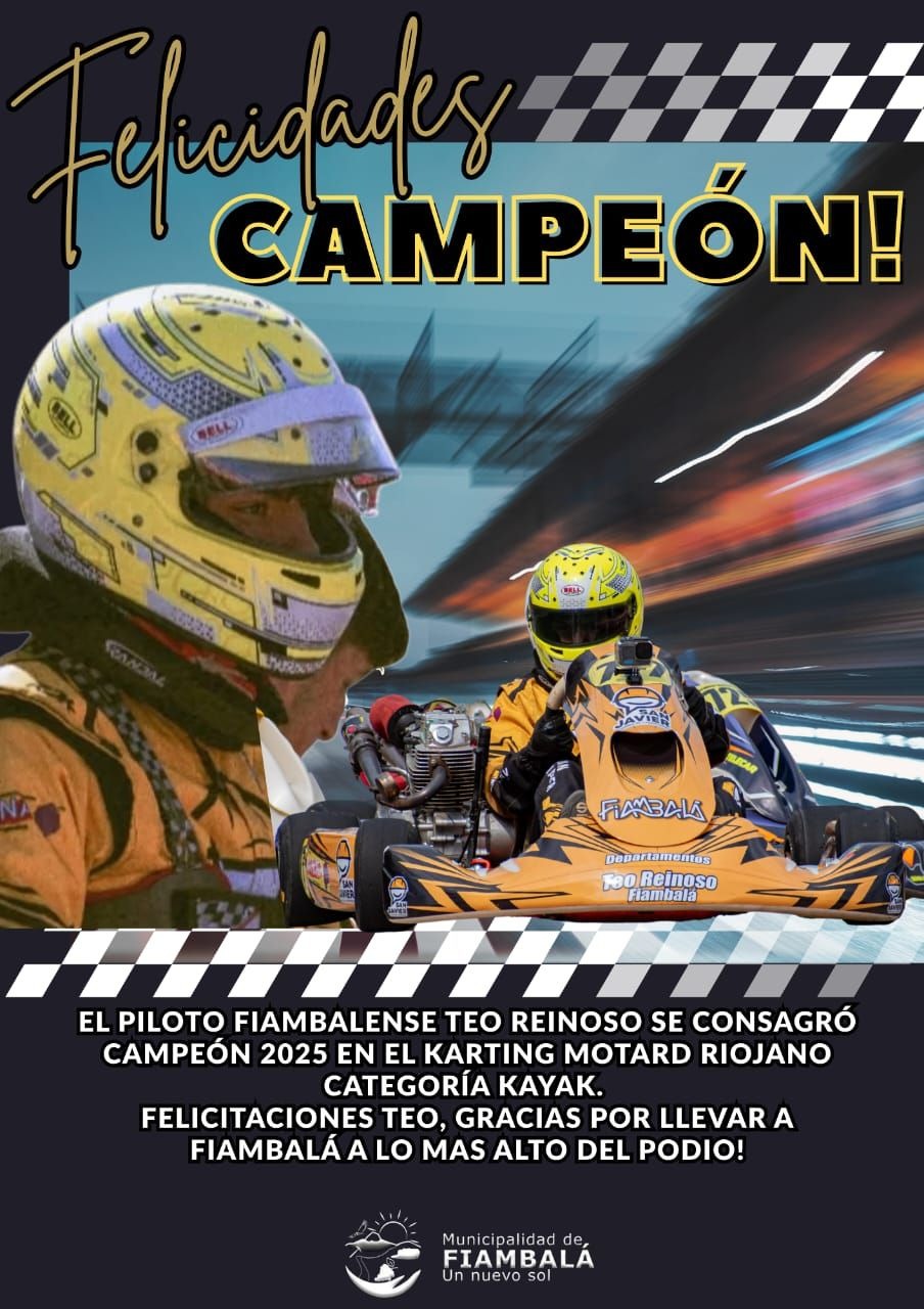 Fiambalá vuelve a brillar en el mundo del deporte motor gracias al talento y la pasión de Teo Reinoso, quien acaba de consagrarse campeón del Campeonato de Karting Motard 2025, categoría Kayak, en la provincia de La Rioja.