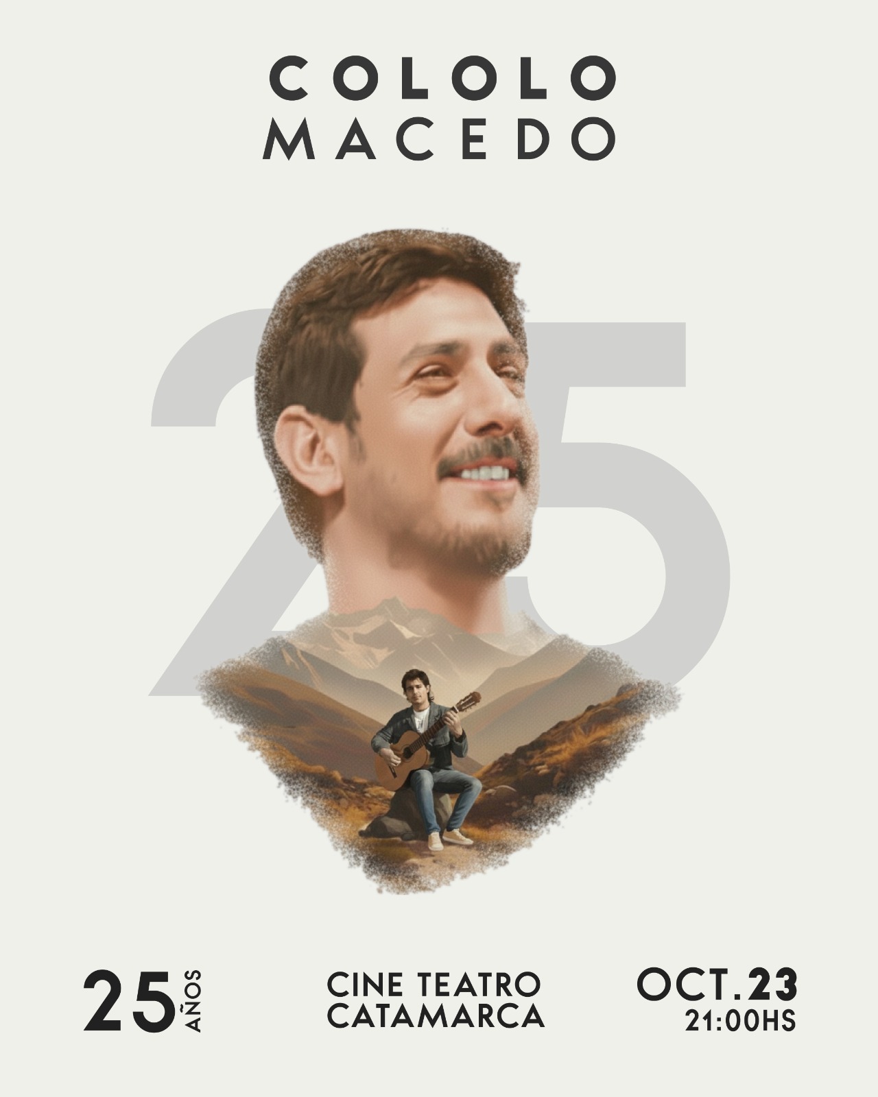 Hoy, a las 21 hs el folklorista catamarqueño Cololo Macedo festejará sus 25 años de carrera artística con un imponente espectáculo en el Cine Teatro Catamarca