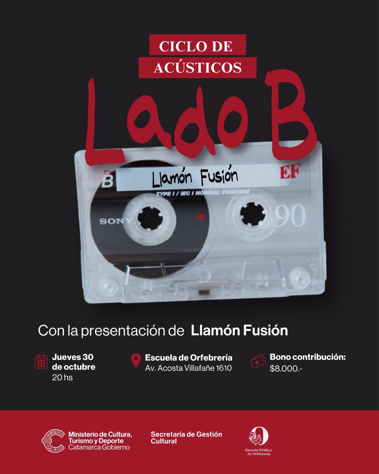 El ciclo de acústicos Lado B es una iniciativa impulsada por el Ministerio de Cultura, Turismo y Deporte, con la organización de la Secretaría de Gestión Cultural y busca brindar un espacio a artistas emergentes, promoviendo la diversidad de géneros musicales. El ingreso al concierto se realizará mediante un bono contribución de $8.000.