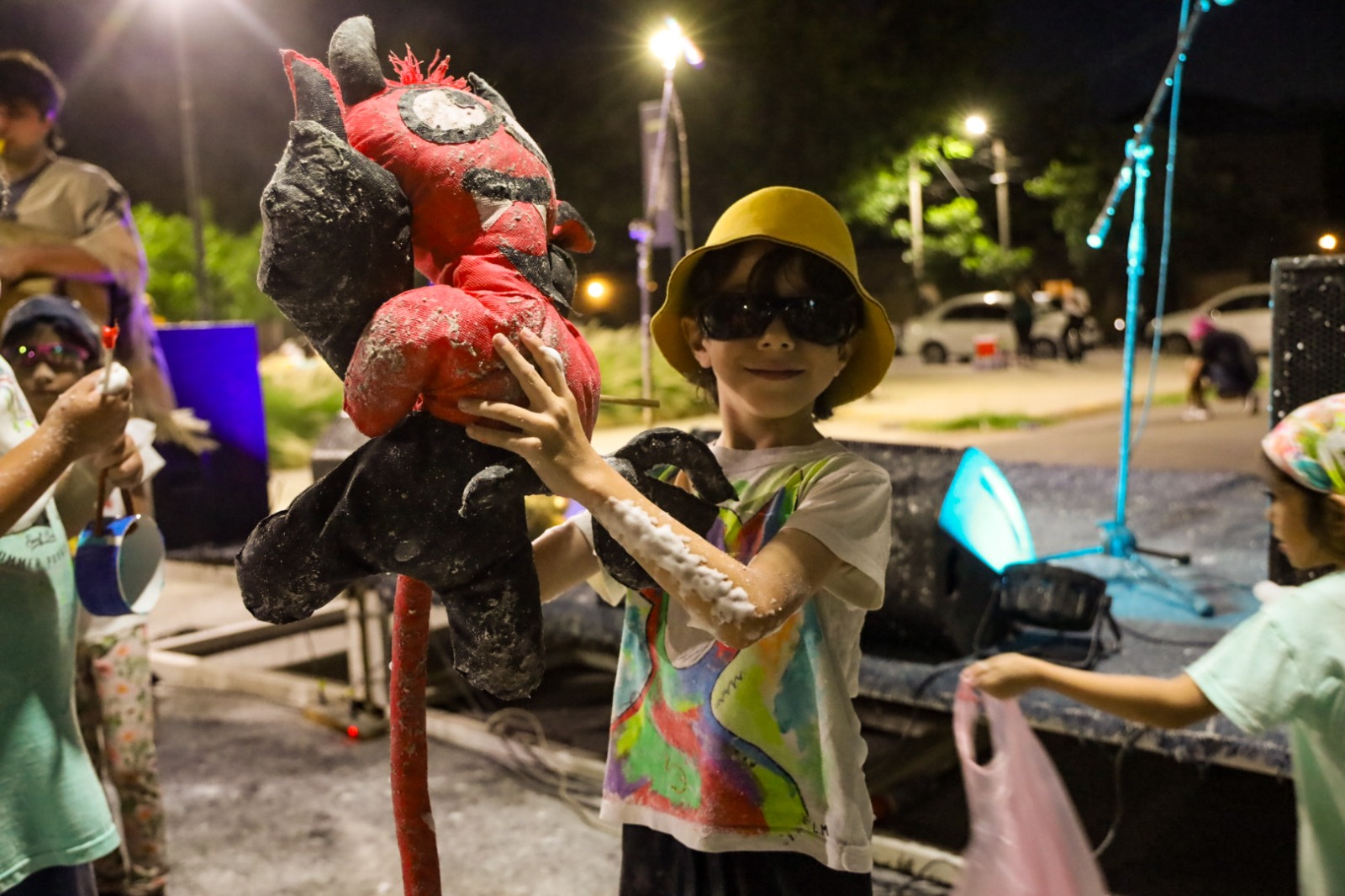 Antes del momento central, el sonido de las cajas comenzó a marcar el compás. El profesor Pablo Olaz guiaba a grandes y chicos en la construcción de cajas, pañuelos y muñecos chayeros. Luego, ofreció un taller para crear e interpretar el canto de coplas. “Nuestro objetivo es reflotar ritmos típicos como bailecitos, vidalas chayeras propios del norte para concientizar sobre nuestras cosas”, destacó el docente que junto a un grupo de colegas conforman además la banda “Amalgama” que interpreta folklore para las infancias.