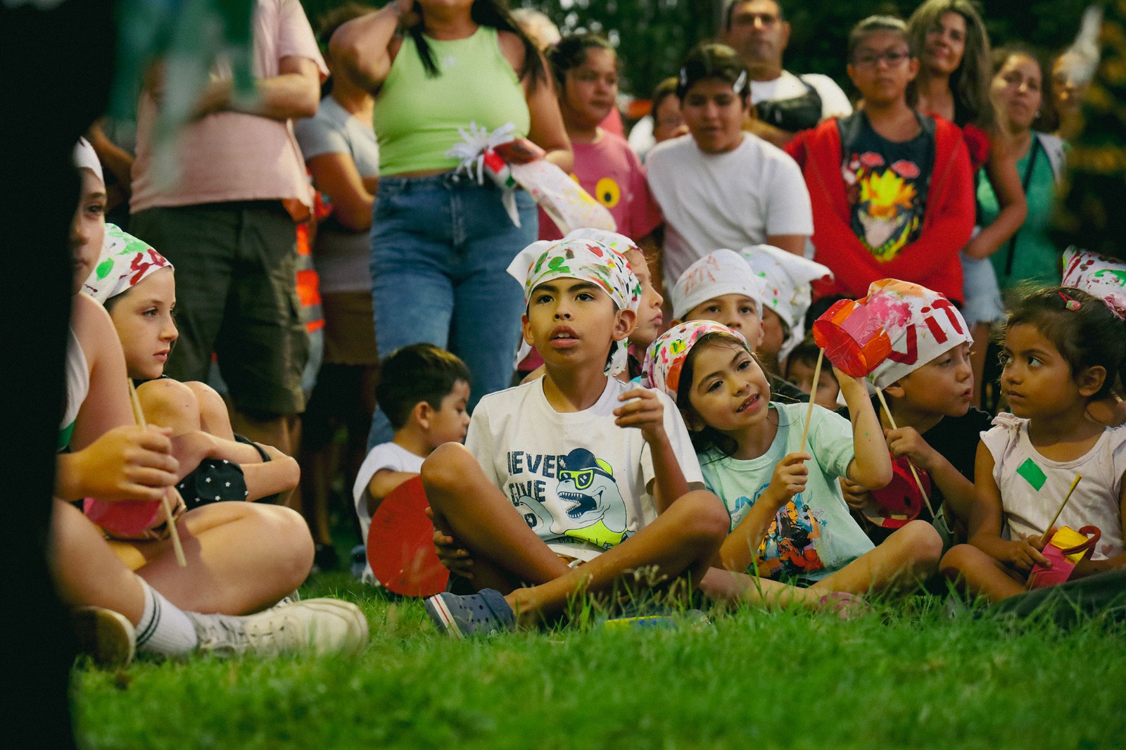 Familias enteras se ubicaron en la plaza frente al escenario montado sobre la calle. Niños con las mejillas blancas de harina corrían entre los puestos de artesanos y productores; turistas de San Juan, Buenos Aires, Santiago del Estero y Tucumán y residentes se mezclaban sin distinción. La fiesta no distinguía procedencias: todos eran parte del mismo rito.
